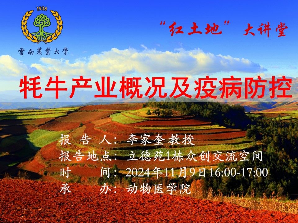 11月9日“红土地”大讲堂:牦牛产业概况及疫病防控
