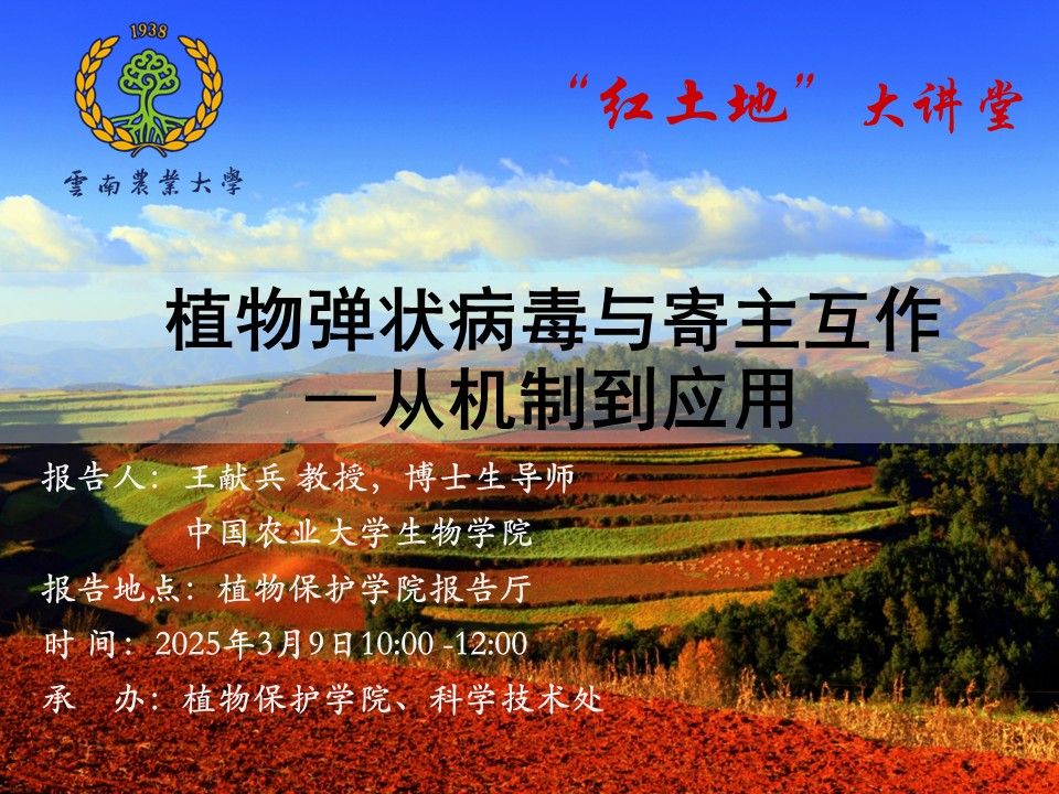 3月9日“红土地”大讲堂:植物弹状病毒与寄主互作——从机制到应用