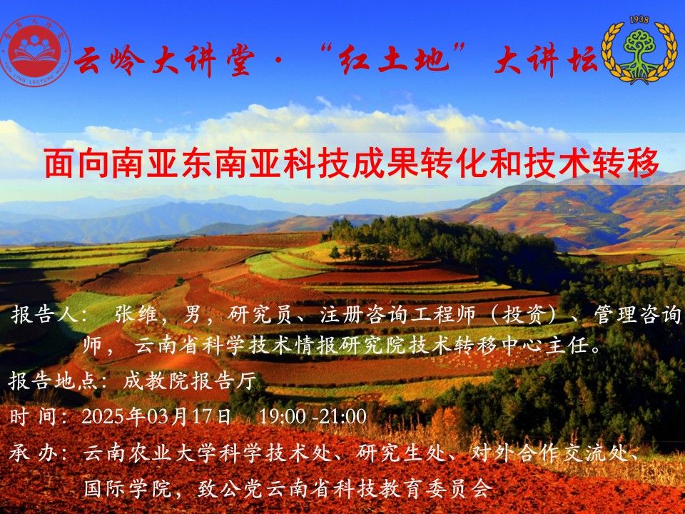 3月17日“红土地”大讲堂:面向南亚东南亚科技成果转化和技术转移