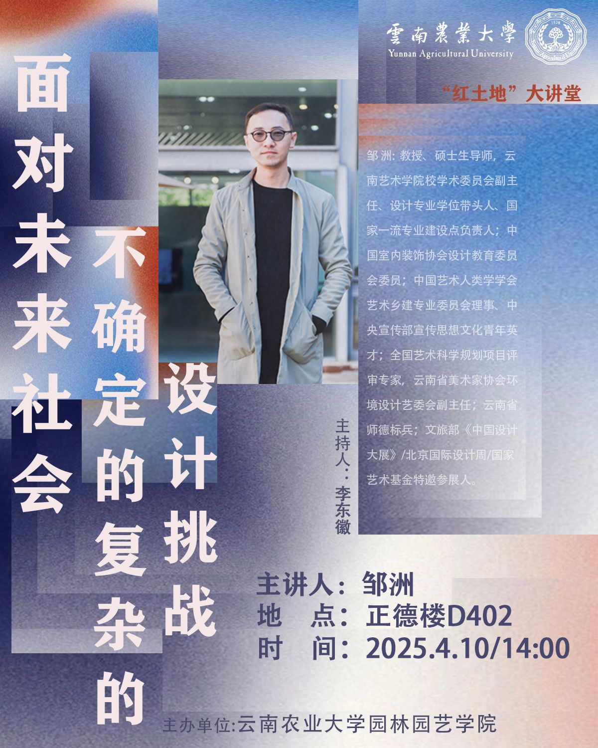 4月10日“红土地”大讲堂:面对未来社会不确定的复杂的设计挑战