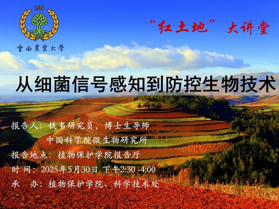 5月30日“红土地”大讲堂:从细菌信号感知到防控生物技术