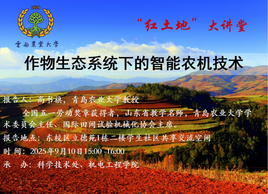 9月10日“红土地”大讲堂:作物生态系统下的智能农机技术