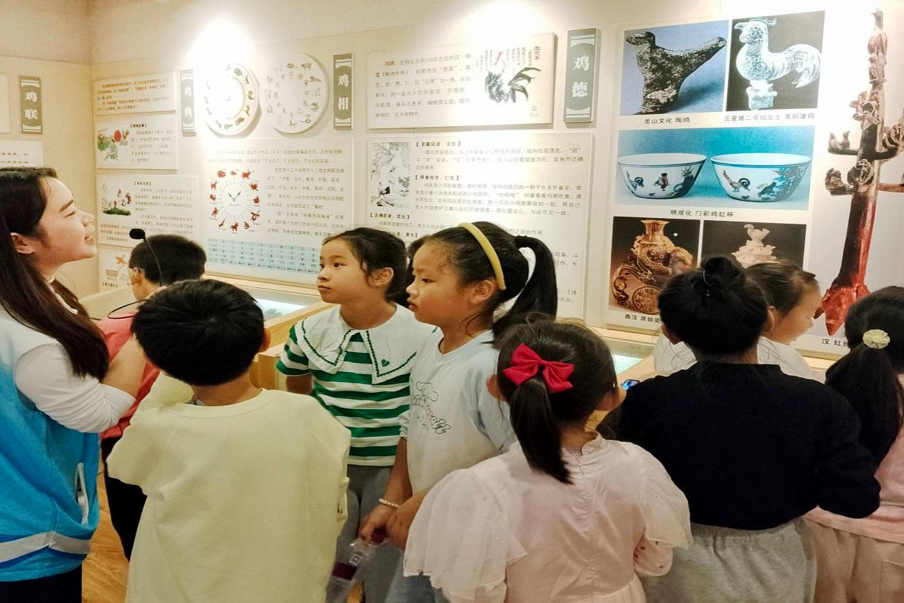 刚踏入博物馆大门,同学们就被充满浓郁文化氛围的展厅所吸引。明亮的灯光下,一幅幅生动的展板、一件件珍贵的实物展品,讲述着“鸡”的故事。