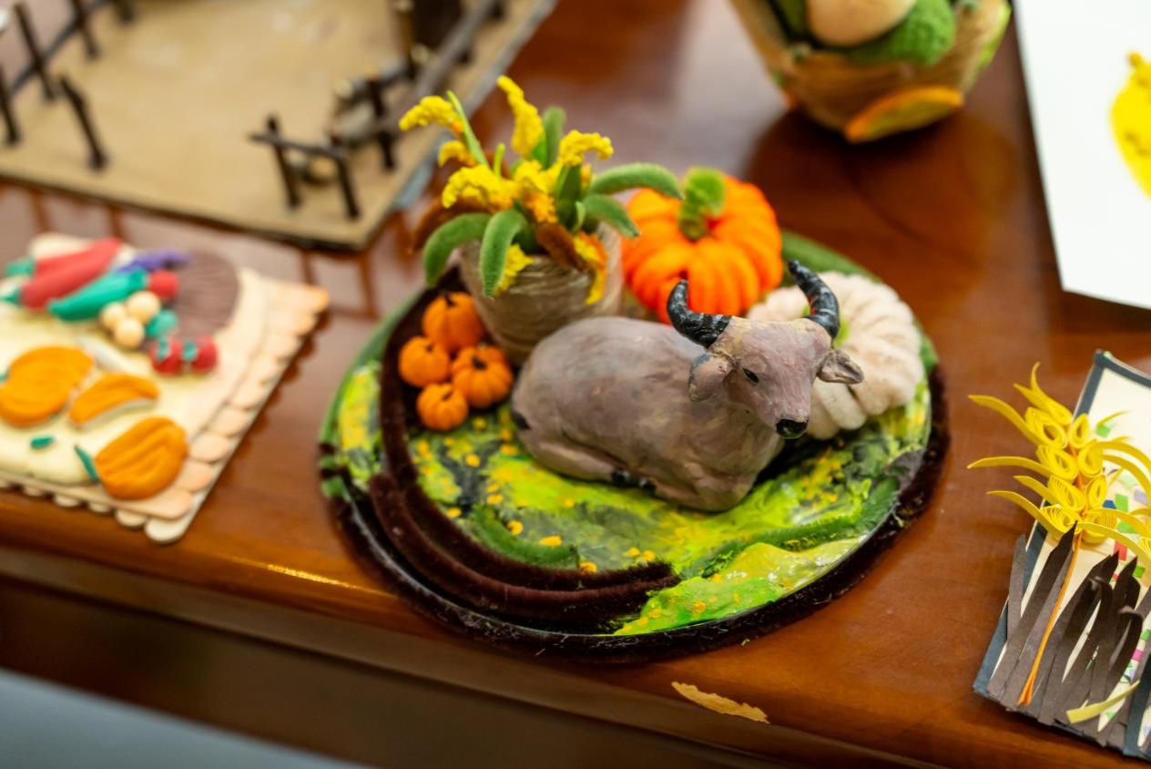 活动现场气氛热烈,精彩纷呈,同学们各显神通,通过对材料的塑造,描绘出金秋丰收的盛景,饱满的果实、金黄的麦浪……普通的材料与比赛主题在同学们的手中变成了独具匠心的装饰品。